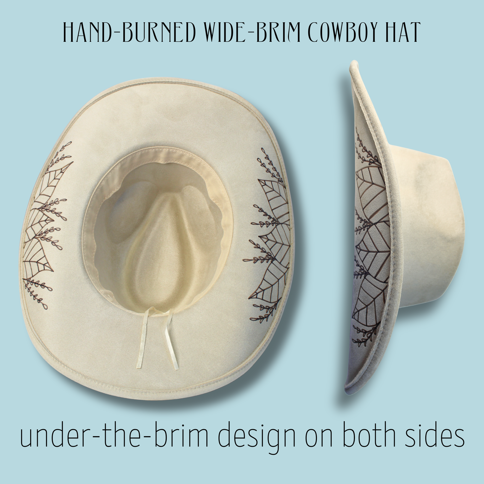 Botanica Wide Brim Cowboy Hat – Hand-Burned Underside Botanical Design